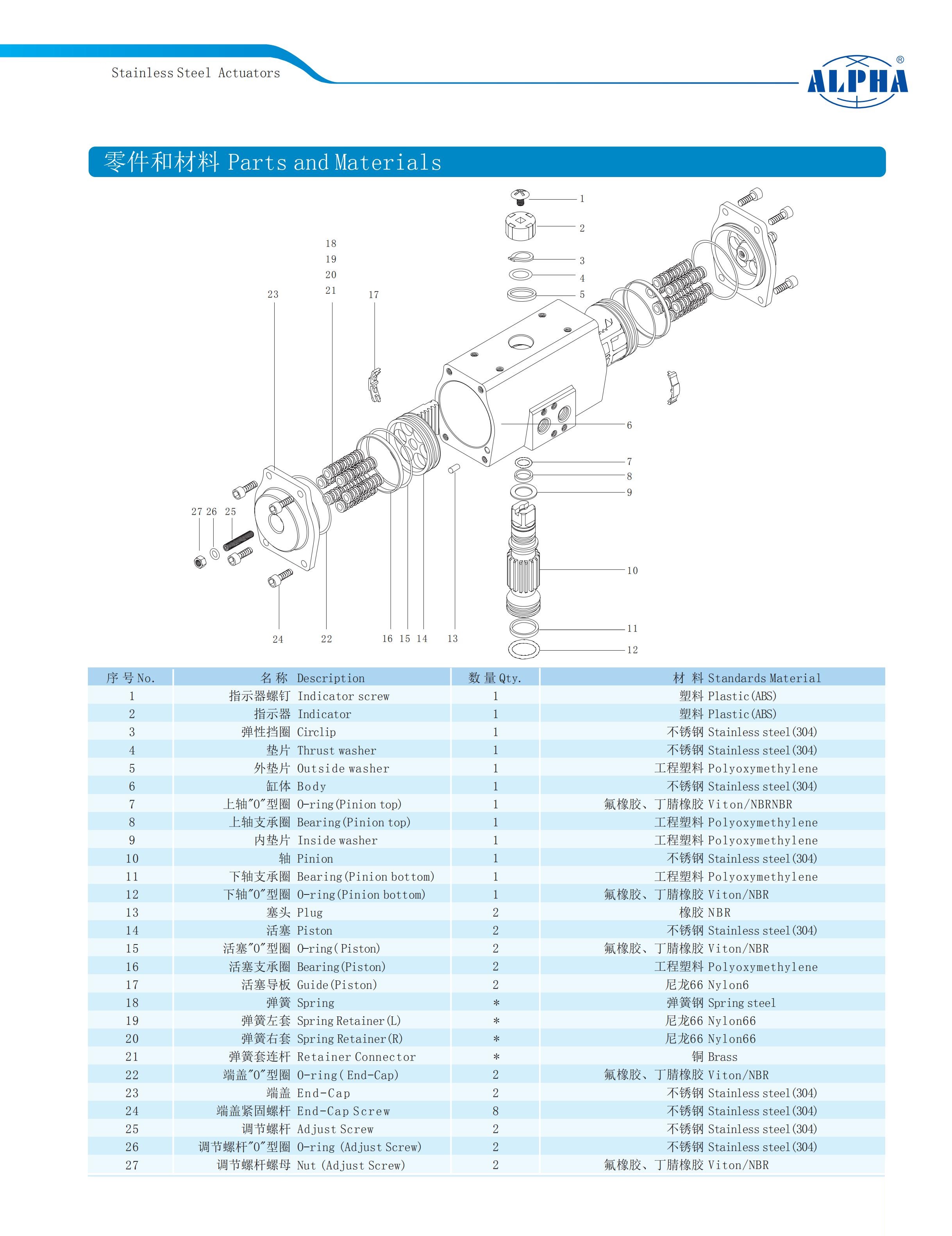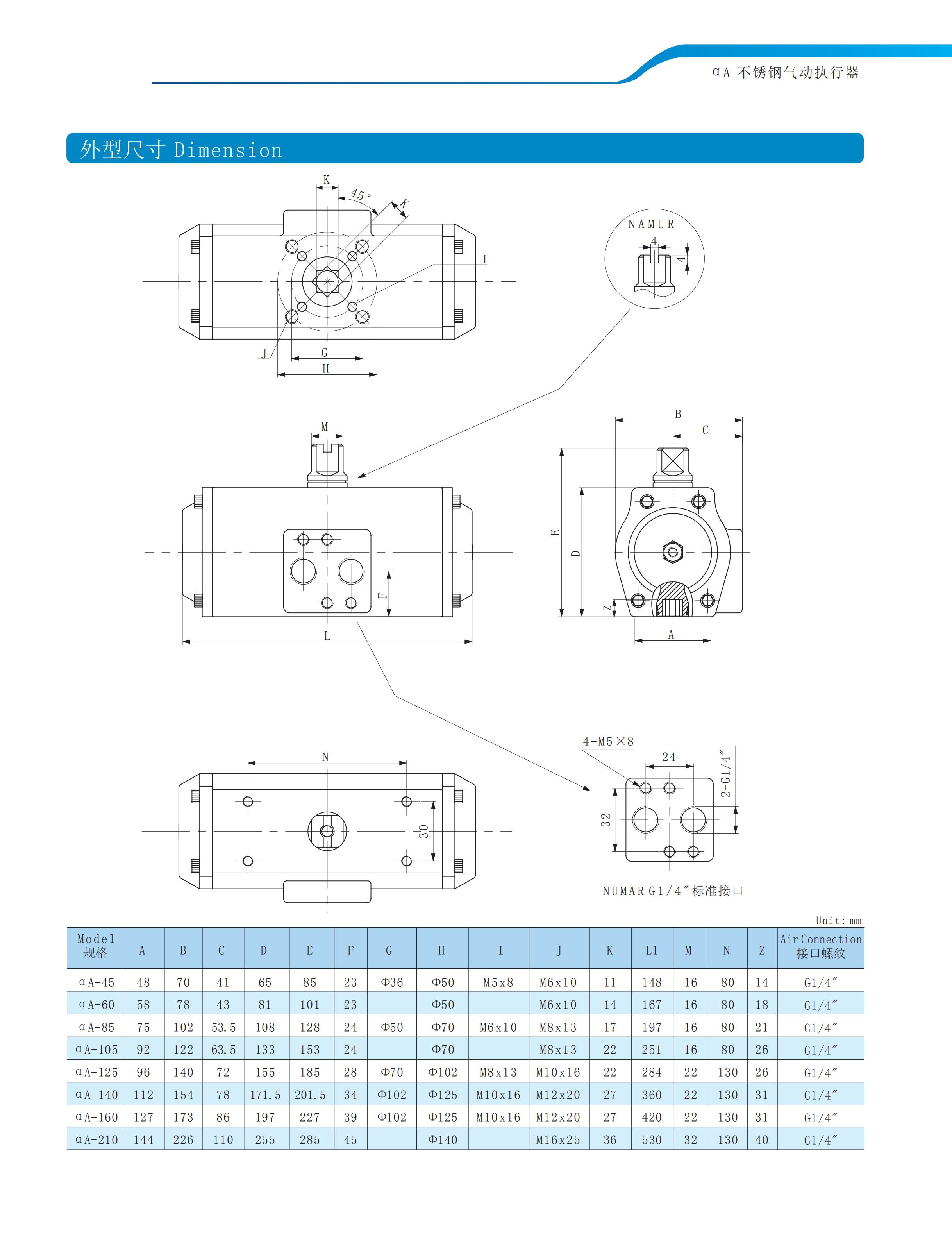 不锈钢角行程气动执行器
